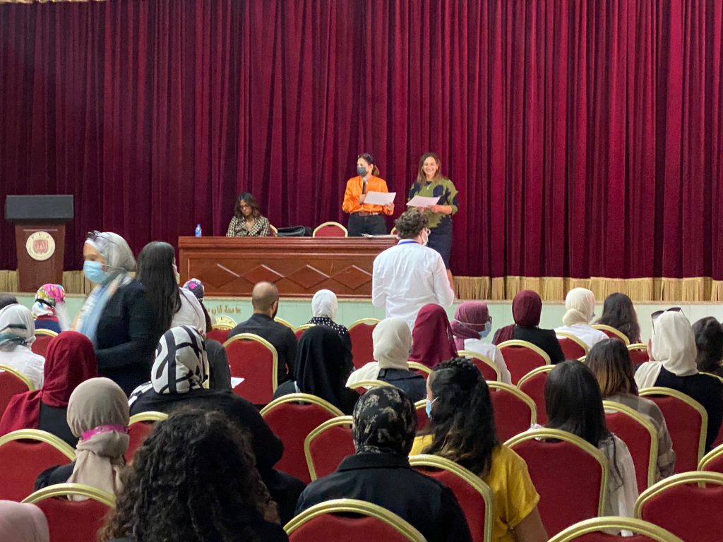 نظمت كلية اللغات والترجمة بالتنسيق مع مركز التدريب الميدانى بالجامعة حفل توزيع شهادات الطلاب الذين اجتازوا التدريب الميدانى و ذلك يوم الثلاثاء الموافق 2 نوفمبر 2021 بالمسرح الطلابى حيث قامت أ.د/ سحر حموده – عميدة كلية اللغات و الترجمة و د/ امنية سالم و م.م/ رانيا بسيونى بتوزيع الشهادات على الطلاب بمشاركة م. سارة علاء و أ. اميرة بشر مشرفى مركز التدريب الميدانى .