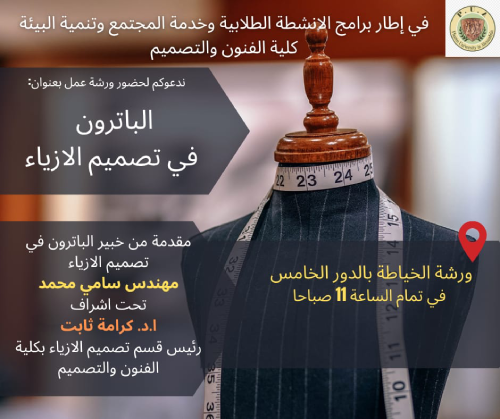 في إطار برامج الأنشطة الطلابية بكلية الفنون والتصميم بجامعة فاروس بالإسكندرية، نُظمت ورشة عمل بعنوان “الباترون في تصميم الأزياء”، وذلك ضمن سلسلة الفعاليات التي تهدف إلى دعم مهارات الطلاب العملية وتعزيز خبراتهم في مجال تصميم الأزياء. قدّم الورشة المهندس سامي محمد، خبير الباترون في تصميم الأزياء، تحت إشراف الأستاذة الدكتورة كرامة ثابت، رئيس قسم تصميم الأزياء بالكلية، والدكتورة أميرة حمدي، رائد النشاط بالكلية. تناولت الورشة أساسيات رسم الباترون وكيفية تحويل الأفكار التصميمية إلى نماذج أولية دقيقة يمكن تطبيقها عمليًا في تنفيذ الأزياء.