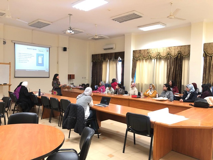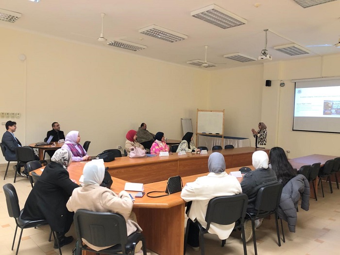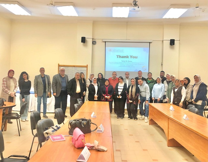 وقدم ورش العمل المستوى الأول: أستاذ مساعد: منة الله جويد – مدير إدارة العلاقات الدولية بالجامعة والمدرب بمركز تطوير التعليم.