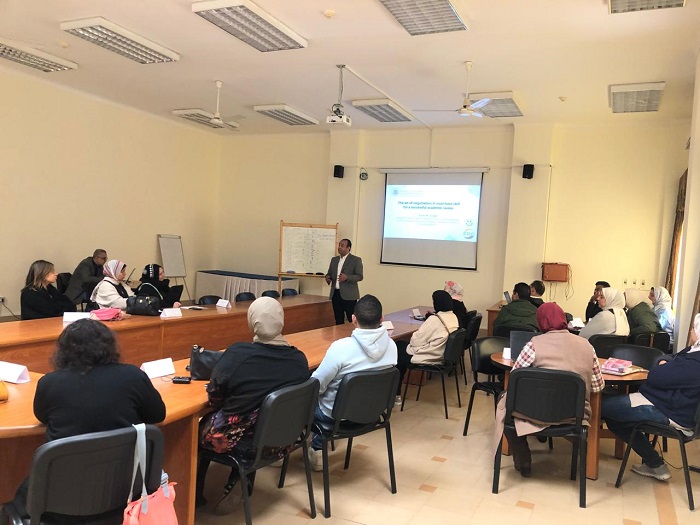 نظّم مركز تطوير التعليم سلسلة من ورش العمل التي عُقدت لأول مرة في المركز تحت عنوان “فن التفاوض: مهارة ضرورية لمسيرة أكاديمية ناجحة”. وقدّم البرنامج التدريبي أ.م.د. تامر الصاوى – الأستاذ المساعد بكلية السياحة وإدارة الفنادق والمدرب بمركز تطوير التعليم. عُقدت ورش العمل يوم الإثنين الموافق 2/3/2026 ويوم الثلاثاء الموافق 17/3/2026 ، لعدد من أعضاء هيئة التدريس والمساعدين من مختلف الكليات. وقد لاقى البرنامج التدريبي استحسانًا كبيرًا من المتدربين، حيث عرّفهم على مهارات تفاوضية فعّالة ضرورية للنجاح الأكاديمي، مما يمكّنهم من إدارة النقاشات المعقدة بثقة، وبناء شراكات استراتيجية، والالتزام بالنزاهة المهنية، وتحقيق نتائج مُثمرة تُساهم في تطوير مسيرتهم المهنية ومؤسساتهم. وقد جمع البرنامج بين النظرية والفكاهة والأنشطة التفاعلية، مثل “تبادل الدقيقة الواحدة” و”أزمة آلة القهوة”، لجعل مهارات التفاوض جذابة وقابلة للتطبيق عمليًا للأكاديميين.