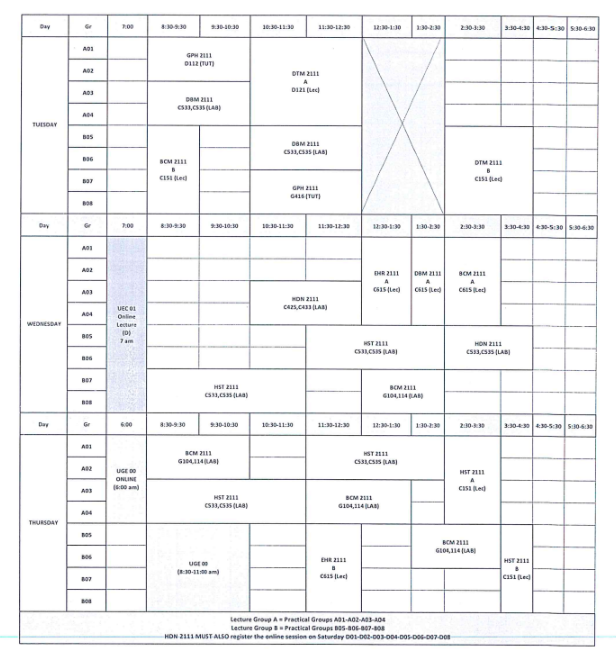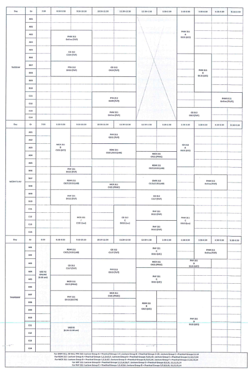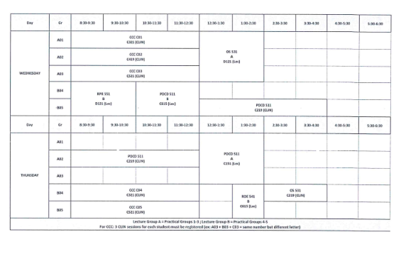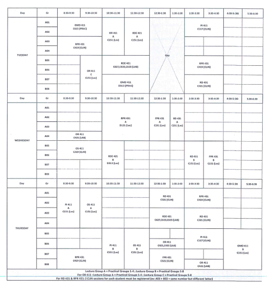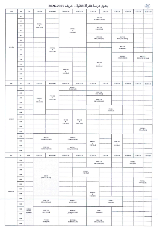 جدول الفرقة الثانية