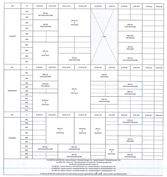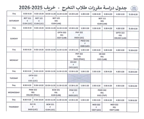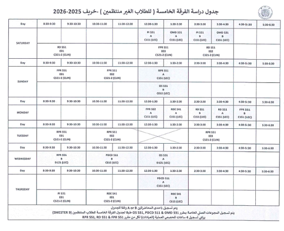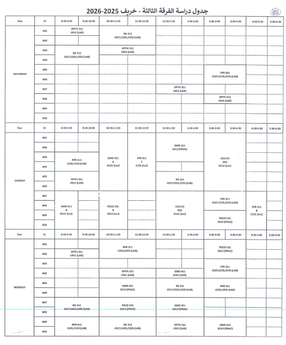 جدول الفرقة الثالثه