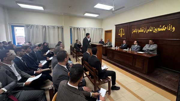 وقد استقبل الأستاذ الدكتور أحمد صالح الصعيدي وفد كلية الحقوق بجامعة المنوفية برئاسة الأستاذ الدكتور أبو الخير عطية، عميد الكلية ورئيس قسم القانون الدولي العام السابق، وبحضور الدكتورة نورهان موسى، منسق المسابقة من جانب جامعة المنوفية، وسط أجواء سادتها المودة والتعاون المهني. ركزت المحاكاة على القضية المرفوعة من جنوب إفريقيا أمام محكمة العدل الدولية ضد الكيان الصهيوني، في تجربة أكاديمية مشرفة نالت إشادة واسعة من الحضور والمختصين بفضل الأداء المبهر للطلاب وقدرتهم على التحليل القانوني المعمق.