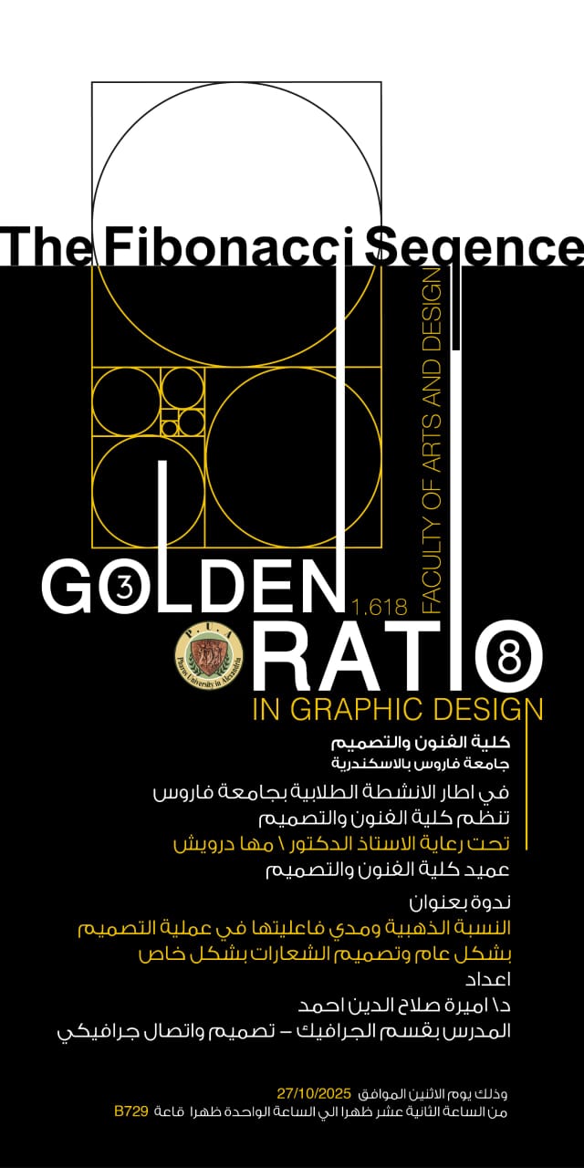 في إطار حرصها على دعم الإبداع والابتكار بين طلابها، أقامت كلية الفنون والتصميم بجامعة فاروس بالإسكندرية ورشة عمل بعنوان “النسبة الذهبية ومدى فعاليتها في عملية التصميم بشكل عام وتصميم الشعارات بشكل خاص”، والتي جمعت بين الجانب النظري والتطبيقي في مجال التصميم البصري.