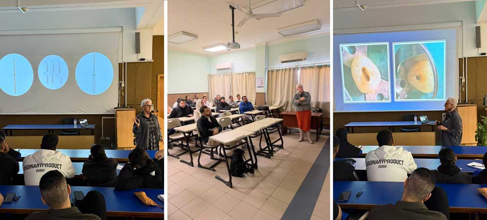 وقد استضافت الكلية البروفيسور زيفيلي جرافليوسكيني، أستاذة علاج جذور الأسنان، يرافقها الباحث د. بدرام من الجامعة الليتوانية للعلوم الصحية في زيارة علمية مكثفة لقسم علاج الجذور بالكلية. تضمنت الزيارة إجراء أبحاث علمية مشتركة تهدف إلى الابتكار في تقنيات المداواة اللبية، مما يساهم في إثراء الإنتاج البحثي للجامعة دولياً. ولم يقتصر التعاون على الجانب البحثي فحسب، بل امتد ليشمل الجانب التعليمي والتدريبي، حيث ألقت البروفيسور جرافليوسكيني سلسلة من المحاضرات العلمية المتقدمة ونظمت ورش عمل تدريبية مكثفة لطلاب الفرقتين الرابعة والخامسة، بالإضافة إلى طلاب الدراسات العليا، مما أتاح لهم فرصة الاحتكاك المباشر بالخبرات الأجنبية والاطلاع على أحدث البروتوكولات العلاجية المتبعة عالمياً.