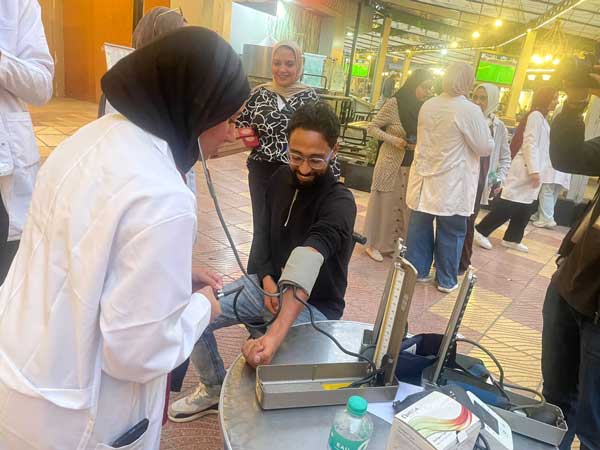 في إطار دورها المجتمعي وجهودها المستمرة في تعزيز الوعي الصحي، نظّمت كلية الصيدلة والتصنيع الدوائي بجامعة فاروس حملة توعية صحية موسّعة بمول جرين بلازا بالإسكندرية، استهدفت المتسوقين وزوار المول من مختلف الفئات العمرية. تضمّنت الحملة مجموعة من الأنشطة والفحوصات المجانية التي شملت قياس ضغط الدم، ومستوى السكر في الدم، وحساب مؤشر كتلة الجسم، إلى جانب تقديم نصائح وإرشادات طبية حول كيفية الحفاظ على نمط حياة صحي وسليم والوقاية من الأمراض المزمنة المرتبطة بأسلوب الحياة مثل السمنة والسكري وارتفاع ضغط الدم.