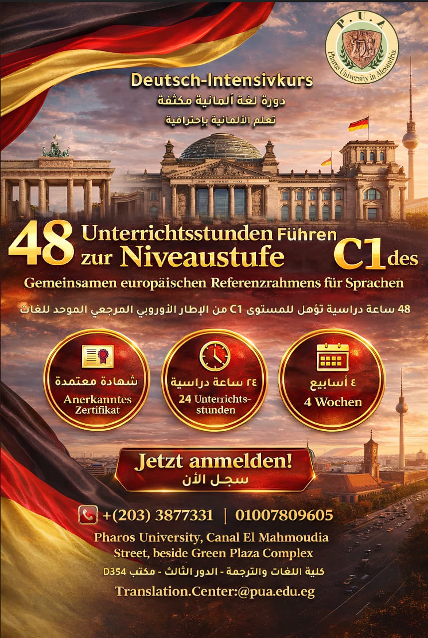 (تهنئة قلبية) أصدرت الهيئة القومية لضمان جودة التعليم والاعتماد قرار اعتماد برنامج اللغة الإنجليزية بكلية اللغات والترجمة بجامعة فاروس بالإسكندرية بتاريخ 29 مايو 2024 الشكر موصول لكافة منسوبي كلية اللغات والترجمة من أعضاء هيئة التدريس والهيئة المعاونة، والجهاز الإداري والسكرتارية على جهدهم المتميز والدعم الدائم من إدارة الجامعة ومركز ضمان الجودة بالجامعة ووحدة ضمان الجودة بالكلية نحو تحقيق هذا الإنجاز الرائع.