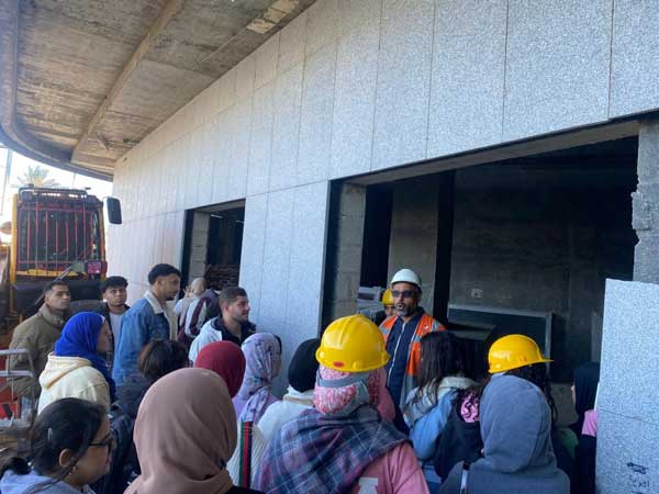 The visit commenced with an informative session led by the Project’s Technical Office Manager, who provided a detailed explanation of the towers’ conceptual design and their diverse structural components. The discussion highlighted the strategic importance of the towers within the broader context of New Alamein City. Throughout the tour, students gained valuable insights into the advanced structural systems employed in skyscraper construction and were introduced to the methodologies of quantity surveying and site management for mega-projects. This exposure significantly enhanced their analytical skills in handling large-scale developments with complex technical requirements.