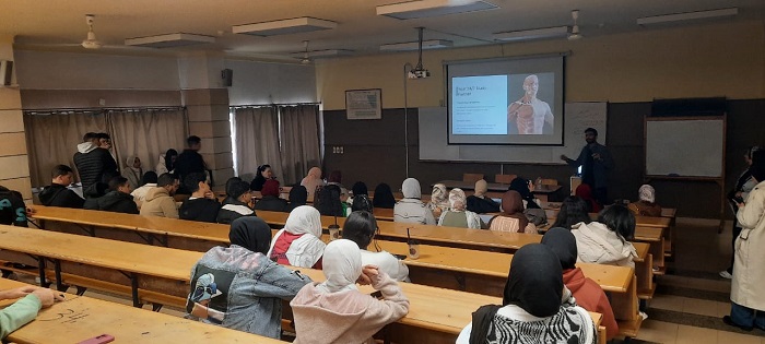 Promoting interdisciplinary knowledge integration between technology and medical sciences, PUA’s Faculty of Pharmacy held a specialized workshop titled “AI Applications in the Pharmaceutical Field”. Held under the supervision of the Student Activities Department, the event featured an exemplary model of inter-faculty student collaboration, as it was presented by student Huthaifa Mustafa from the Faculty of Computer Science and Artificial Intelligence. He shared modern technical insights and their adaptation for the pharmaceutical sector before an audience of faculty members, teaching assistants, and a large number of students.