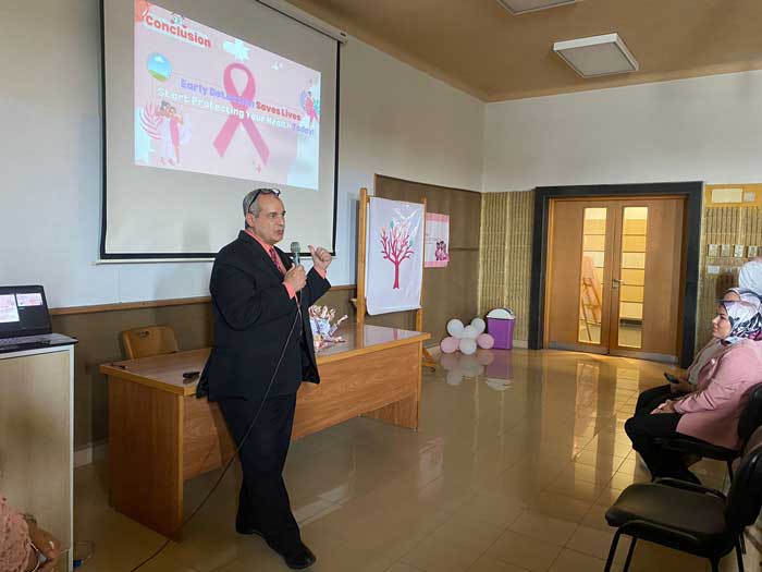 The session also clarified the symptoms of the disease and the healthy habits that contribute to its prevention, along with answering inquiries from female students and attendees. Prof. Dr. Sami Abdel Rahman, Dean of the Faculty, spoke about the importance of early detection, defining risk factors and prevention methods, and correcting misconceptions related to the disease.