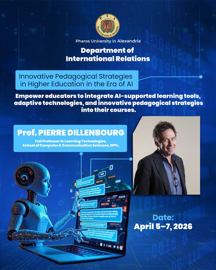 Prof. Pierre Jean Dillenbourg will deliver a series of workshops during his visit to PUA from 5 –7 April 2026; including a faculty & staff development workshop titled: “Innovative Pedagogical Strategies in Higher Education in the ERA of Artificial Intelligence”; which will be held twice on 5th and 6th of April in D019 from 9.00 am to 3.30 pm for a group of staff members from different faculties. The workshop aims to empower educators to integrate AI-supported learning tools, adaptive technologies, and innovative pedagogical strategies into their courses.
