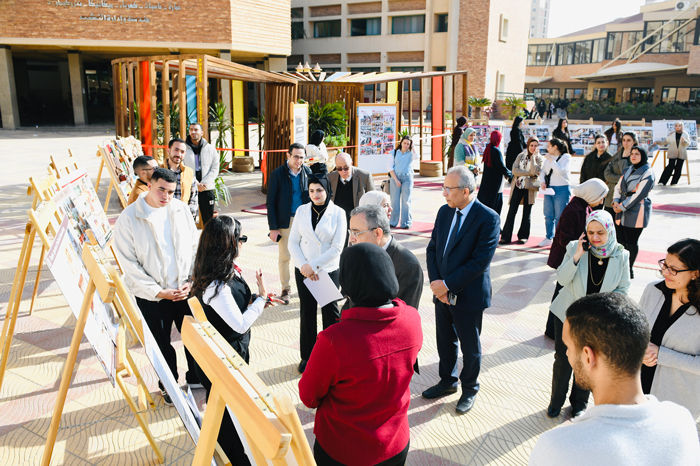 في تظاهرة فنية وهندسية مبهرة، افتتح قسم الهندسة المعمارية بكلية الهندسة بجامعة فاروس بالإسكندرية معرض نتاج أعمال طلاب المستوى التاسع لمقرر التصميم الداخلي. وذلك أمام مدخل كلية الهندسة. أقيم المعرض تحت إشراف د. تغريد أحمد، أستاذ المقرر، وبحضور رفيع المستوى شمل أ. د. محمد عتمان، نائب رئيس الجامعة لشئون خدمة المجتمع وتنمية البيئة، وأ. د. محمد نعيم أنور، عميد كلية الهندسة، وأ. د. مها درويش، عميد كلية الفنون والتصميم، أ. د. رمضان عبد المقصود، المشرف الأكاديمي لقسم الهندسة المعمارية، وأ. د. غادة راغب، وكيل الكلية لشؤون التعليم والطلاب، إلى جانب نخبة من قيادات الكلية والقسم.