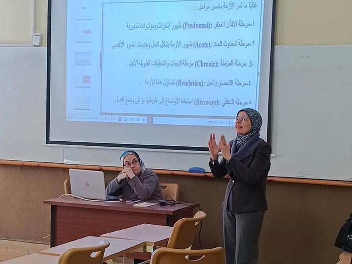 وتناولت الجلسة أهمية الاستعداد الاستباقي ووضع الخطط البديلة لتقليل الخسائر وضمان الاستجابة السريعة للمتغيرات. وأكد مركز خدمة المجتمع أن هذه الفعالية تأتي ضمن برامجه الرامية إلى تنمية قدرات الطالبات وتمكينهن من مواجهة التحديات بثقة، صقلاً لدورهن المستقبلي في خدمة المجتمع. وشهد اللقاء نقاشاً ثرياً وتفاعلاً لافتاً من الطالبات، ما عكس اهتمامهن باكتساب الخبرات العملية التي تدعم مسيرتهن الأكاديمية والمهنية وتؤهلهن للقيادة في مختلف الميادين.