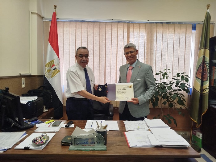 For a more aware and healthy generation, Prof. Dr. Mohamed Etman, Vice President for Community Service and Environmental Development Affairs, hosted Prof. Dr. Maher Soliman, Professor of Oncology at the Faculty of Medicine, Alexandria University, in a meeting aimed at discussing avenues for joint cooperation to spread health awareness among university students.
