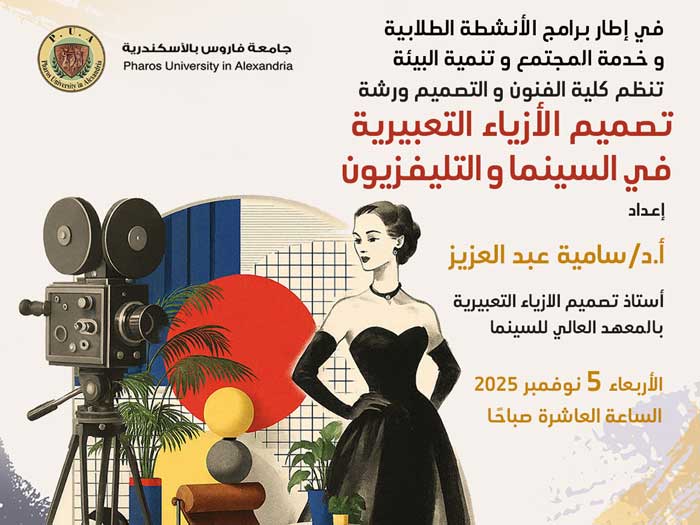 As part of its student activities programs, PUA’s Faculty of Arts and Design hosted Prof. Dr. Samia Abdel Aziz, Professor of Expressive Costume Design at the Higher Institute of Cinema, to deliver a specialized workshop on Expressive Costume Design in Cinema and Television.
