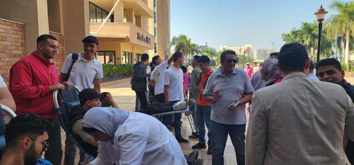 Under the slogan “A Drop of Blood = Life”, PUA’s Faculty of Physical Therapy participated in the blood donation campaign. The participation reflected the spirit of cooperation and responsibility among the Faculty’s students, who embodied the values of humanitarian giving and national duty in their finest form. The campaign was supervised by Prof. Dr. Mohamed Etman, Vice President for Community Service and Environmental Development Affairs.