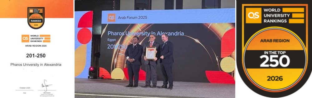 Pharos University in Alexandria (PUA) is proud to announce its continued academic and research excellence, maintaining its position for the second consecutive year among the top 296 universities in the Arab region according to the QS Arab Region University Rankings 2026. The university ranked 201–250 regionally and ninth among Egyptian private universities, reflecting its ongoing commitment to quality education, research excellence, and continuous institutional development.