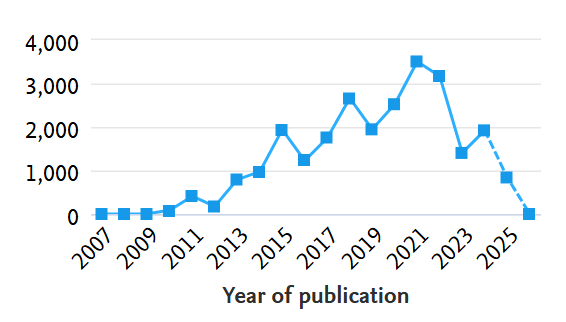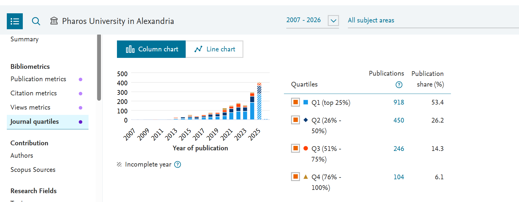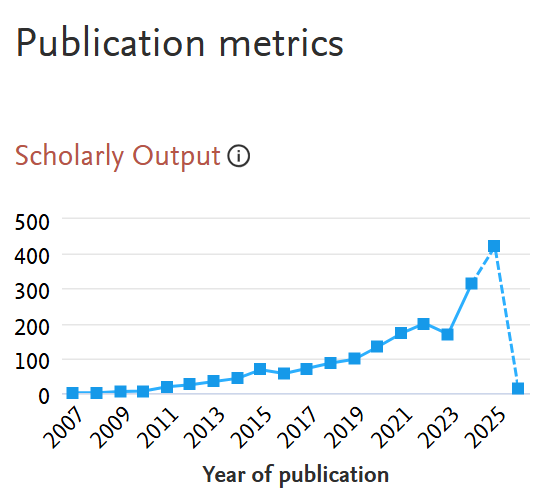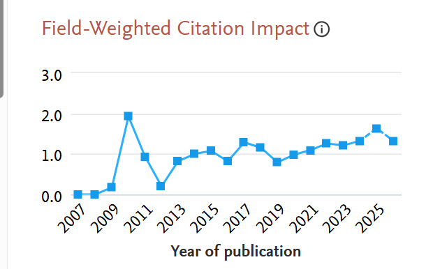 Relative Activity Index (RAI) is defined as the share of an entity’s publications in a subject area, relative to the global share of publications in the same subject.