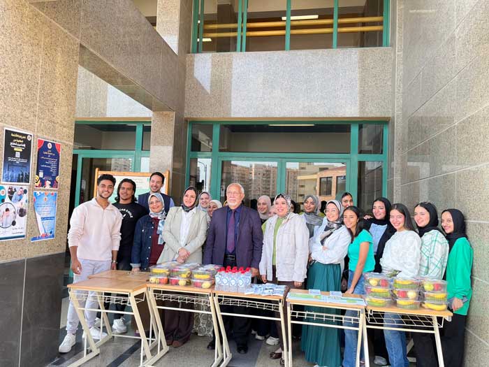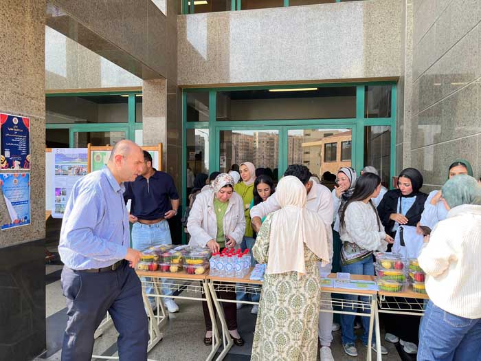 The event was supervised by Prof. Dr. Samy Erfan, Dean of the Faculty, Prof. Dr. Hamdy Badi’a, Vice Dean of the Faculty, and Dr. Ahmed Salah, Member of the Faculty’s Community Service Center. The event witnessed wide participation from students and faculty members and included several engaging activities, notably free blood sugar level measurement and the distribution of healthy meals to raise awareness about the importance of proper nutrition in diabetes prevention and management.