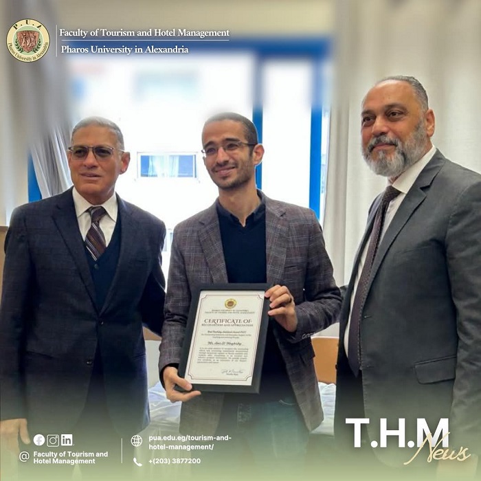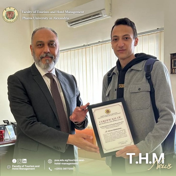 5. Student Support to the Faculty Award: Presented to Ahmed Abdel Halim, a senior student in the Tourism Department.