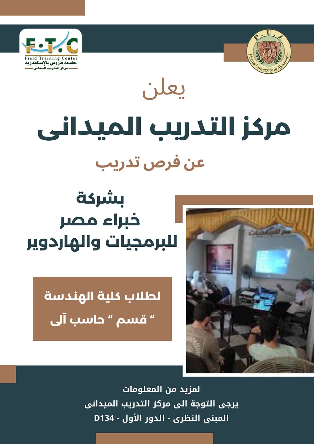 PUA’s Field Training Center is pleased to announce training opportunities for the students of the Computer Engineering Department at the Faculty of Engineering. These training opportunities are offered at Egypt Experts for Software and Hardware Co. For registrations, please visit the Field Training Center at the theoretical building, 1st floor, Room No. D134.